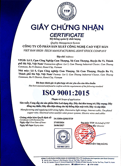 Giấy xác nhận Cáp điện dùng cho hệ thống quang điện LS-DVH SOLAR