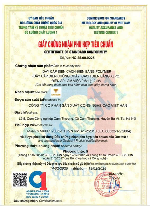Giấy chứng nhận phù hợp quy chuẩn kỹ thuật cho dây cáp điện chống cháy