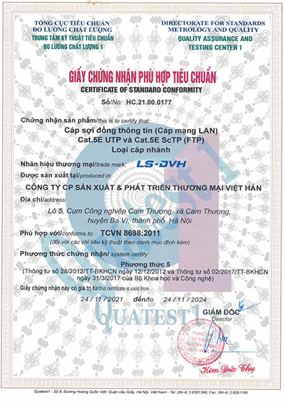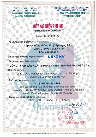 Cáp mạng LS-DVH Chứng nhận phù hợp tiêu chuẩn TCCS TIA-568:2021