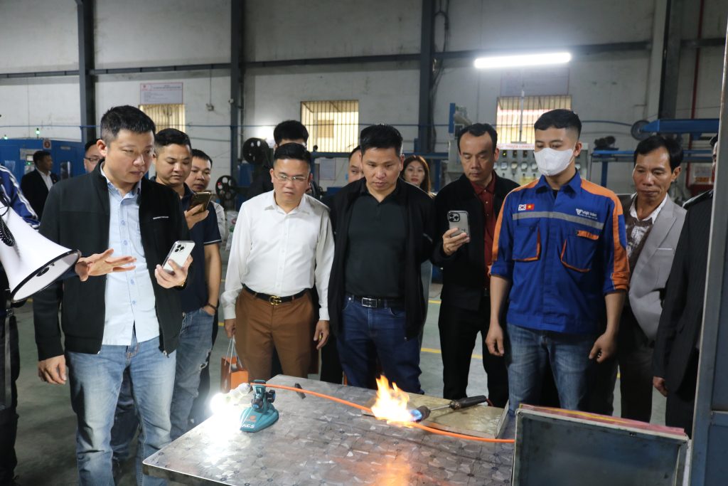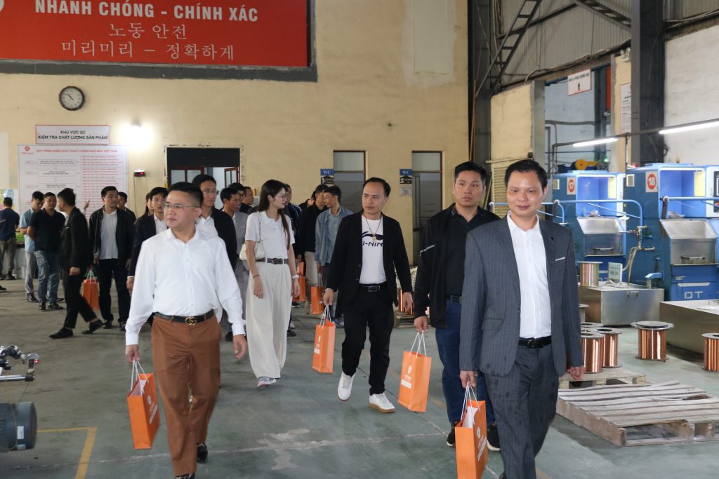 Điểm khác biệt lớn nhất tại Hội nghị Khách hàng Việt Hàn chính là hoạt động tham quan thực tế quy trình sản xuất. Thay vì những bài thuyết trình khô khan trong khán phòng, Quý đối tác đã được trực tiếp tham quan Nhà máy sản xuất với dây chuyền hiện đại, vận hành hối hả, ứng dụng công nghệ tự động hóa tiên tiến nhất. Quy trình kiểm soát chất lượng nghiêm ngặt, đảm bảo mỗi cuộn cáp đều đạt tiêu chuẩn quốc tế.
