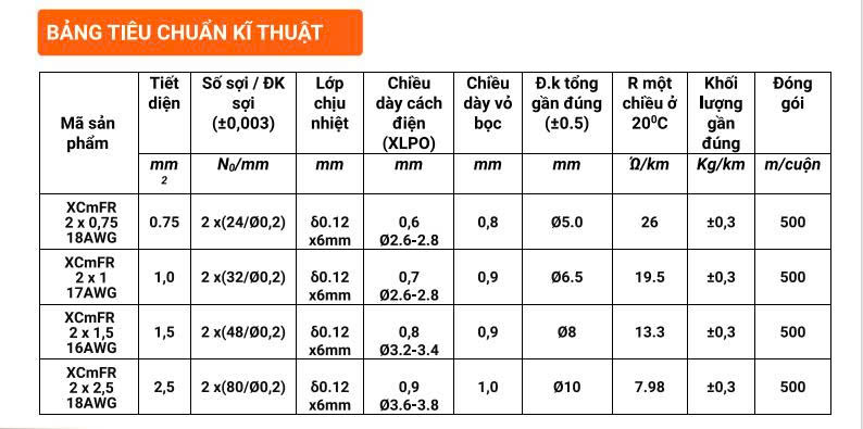 Mã sản phẩm: Dây tín hiệu báo cháy XCmFR 2x0.75mm2