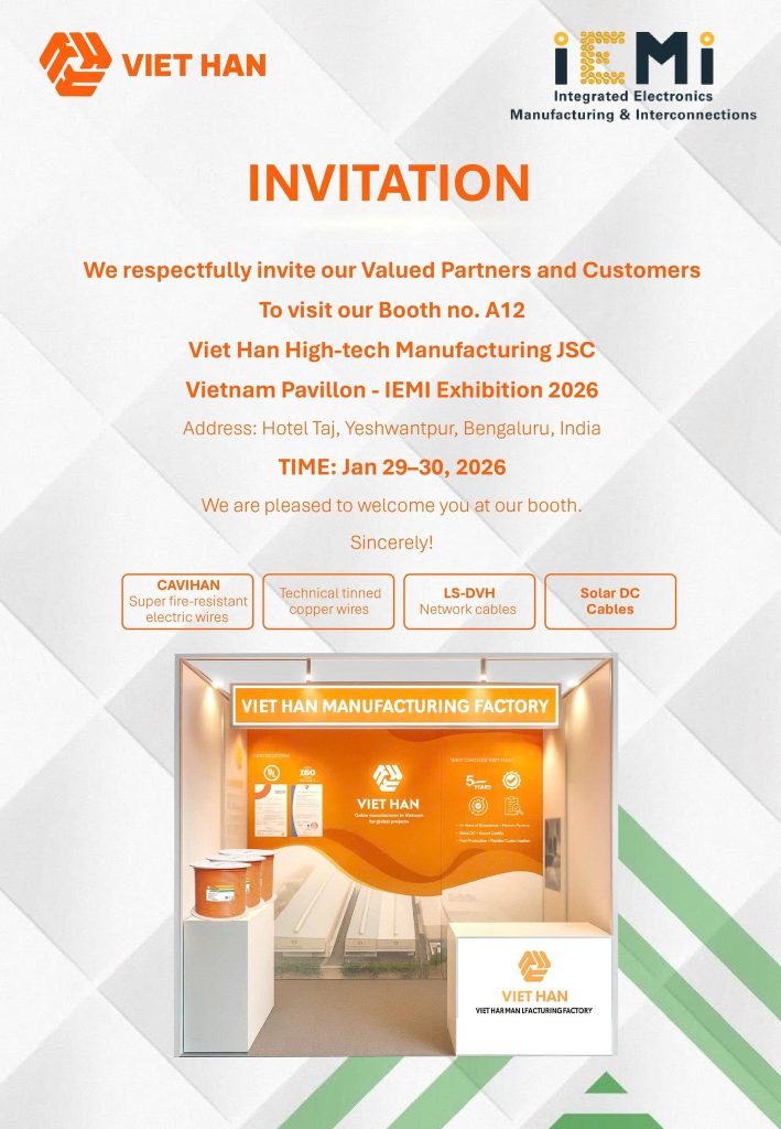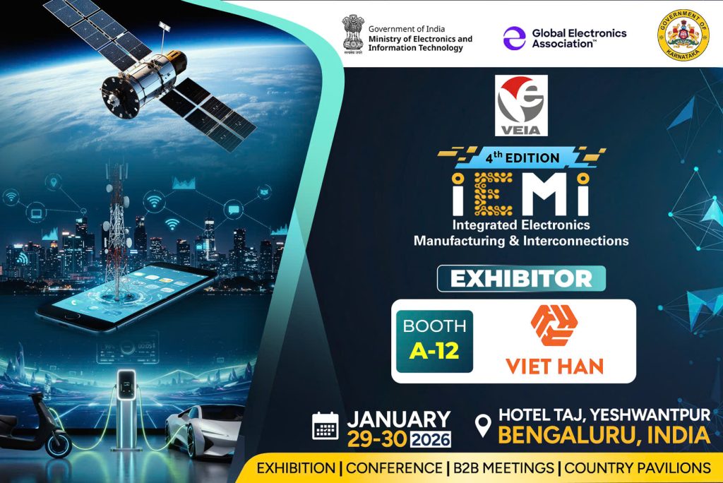 Việt Hàn tham dự triển lãm IEMI (Integrated Electronics Manufacturing & Interconnections) 2026 tại Ấn Độ vào cuối tháng 1/2026. Đây là một trong những bước đi quan trọng nhằm giới thiệu các dòng sản phẩm chiến lược của công ty đến với bạn bè quốc tế.