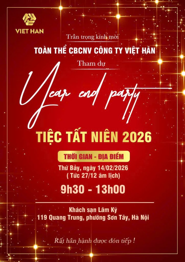 Trong không khí rộn ràng của những ngày cuối năm, đại gia đình Việt Hàn lại cùng nhau hướng về sự kiện quan trọng: Year End Party 2025. Đây không chỉ là một buổi tiệc tất niên mà là hành trình nhìn lại những nỗ lực thầm lặng và tri ân những “chiến binh” quả cảm đã đồng hành cùng sự phát triển của công ty.